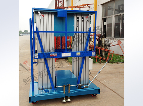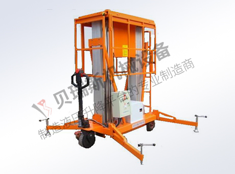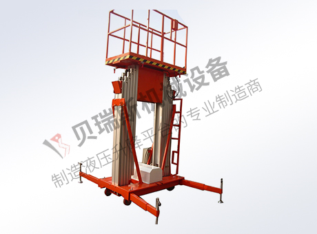 ?双桅柱式升降平台采用高强度优质铝合金材料,具有造型美观、体积小、重量轻、升降平衡、安全可靠等优点。广泛用于工厂、宾馆、餐厅、车站、机场影剧院、展览馆等场所,式保养机具、油漆装修、调换灯具、电器、清洁保养等用途的安全伴侣。